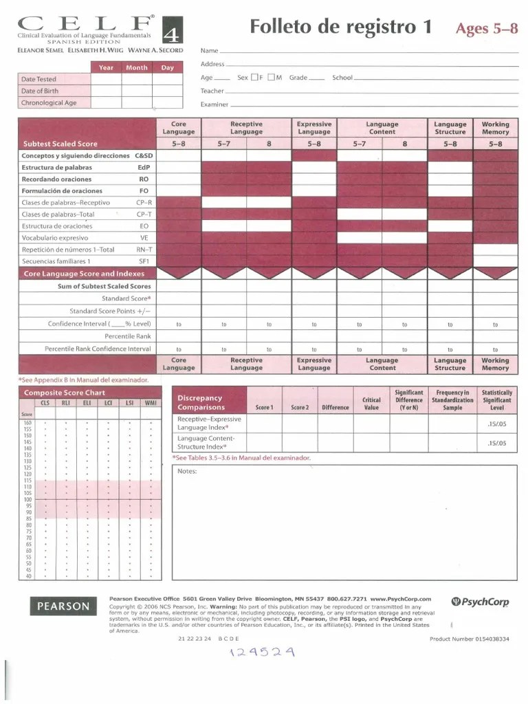 CELF 4 Spanish Protocolo de respuestas 5 a 8 años